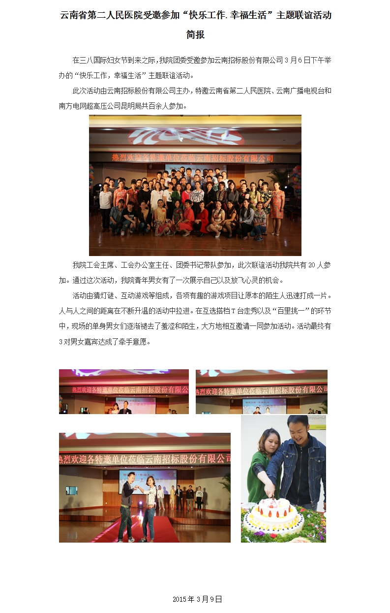 云南省第二人民国产av影片受邀参加“快乐工作.幸福生活”主题联谊活动简报